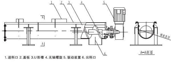 无轴螺旋输送机主要由无轴螺旋、U 形槽、衬板、盖板、进出料口及驱动装置等组成。具有以下特点 :