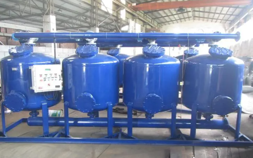 3.过滤水量大,过滤效果好 ·过滤流速快,正常滤速可在40m/h左右,根据水质可达60m/h;过滤器反洗采用产品水,且不必设增压泵和反洗泵;反洗历时2-3min,反洗水量3m3。 ·过滤精度高,杂质过滤精度可在0.10mm以下,出水浊度可小于0.5NTU。 过滤系统由标准单元砂缸组成,过滤流量可从30.6立方米/小时增至2500立方米/小时。